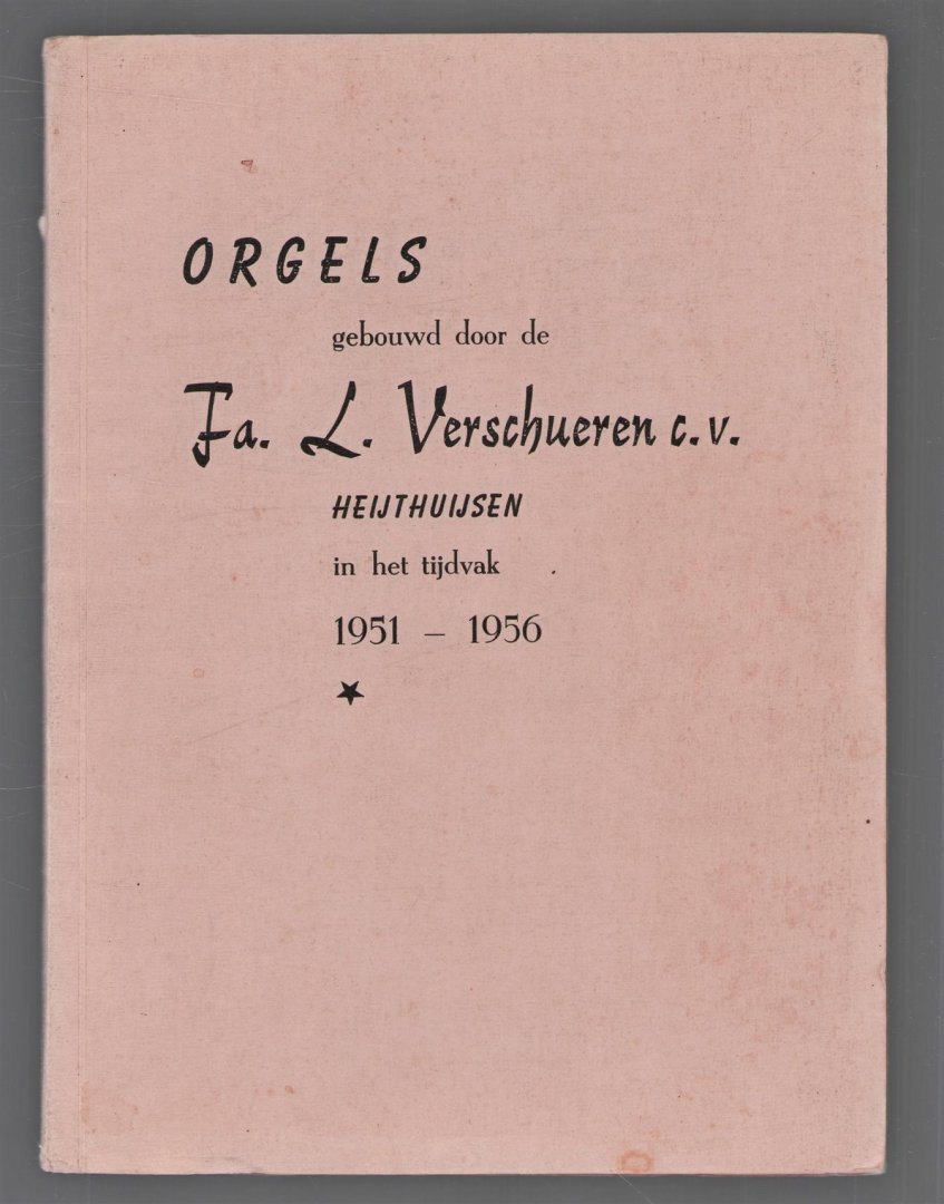 | Titel: | Orgels gebouwd door de Fa. L. Verschueren c.v. Heythuysen (L.) in het tijdvak 1951 - 1956 |