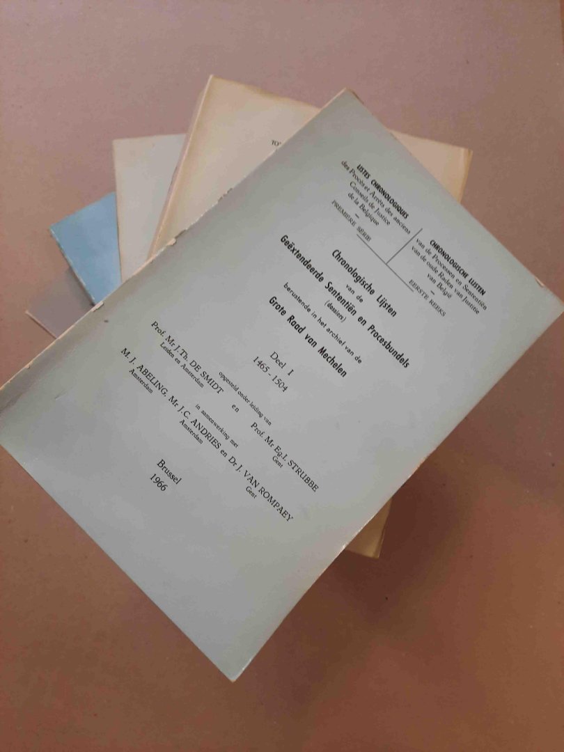 | Titel: | Chronologische lijsten van de Geëxtendeerde Sententiën en Procesbundels berustende in het archief van de Grote Raad van Mechelen. 1465-1580. 6 delen (compleet). |