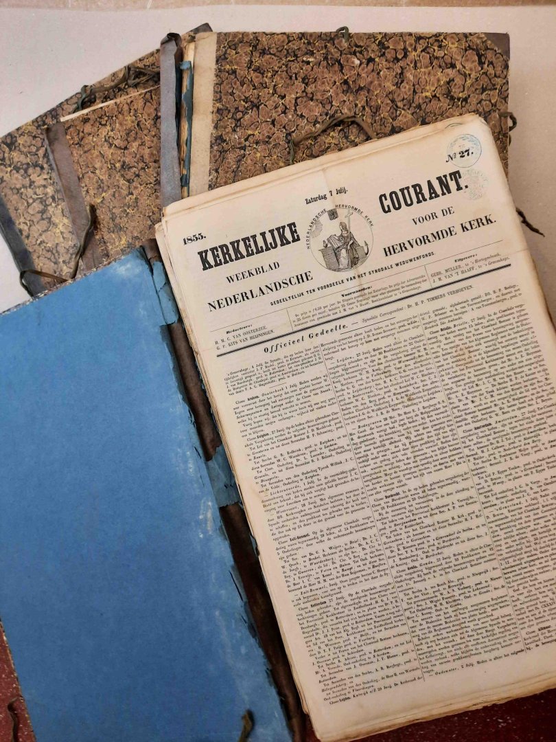 | Titel: | Kerkelijke Courant. Weekblad voor de Nederlandsche Hervormde Kerk. Jaargang 1855, nrs. 27-47, 49-52 en Jaargang 1856, nrs 1-50, 52. / Jaargang 1857, nrs. 1-52 (compleet). / Jaargang 1858, nrs. 1-52 (compleet). / Jaargang 1859, nrs. 1-53 (compl... |