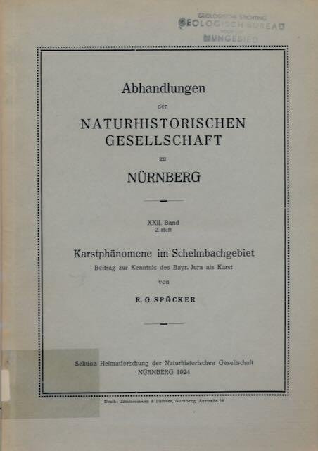 | Titel: | Abhandlungen der Naturhistorischen Gesellschaft zu Nürnberg XXII band, 2. Helft.: Karstphänomene im Schelmbachgebiet. Beitrag zur Kenntnis des Bay. Jura als Karst. |