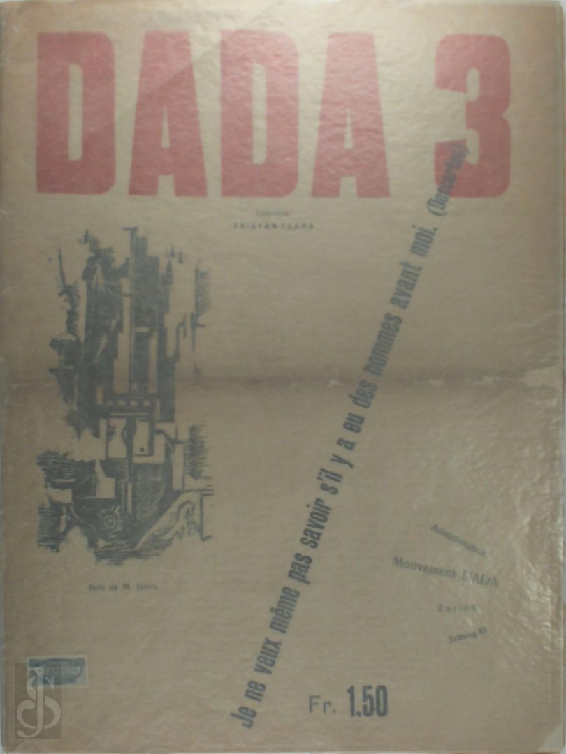 This is the 3th off 4 in Zürich pubished \"Dada\" magazine, editor was Tristan Tzara After 2 earlier publications in July and december 1917, this third number was published 1 year later. In this is published Tzara's 3 page manifest Dada 1918 > Further textcontibutions by Giuseppe Raimondi, Pierre Reverdy, Francis Picabia, Pierre Soupault, Camillo Sbarbaro, Pierre Albert-Birot, Paul Dermée, Alberto Savinio und Vincente Huidobro. Printed in an edition of 2000. This number was published on a larger format and printed on Newspaper Paper, with various typographical contibutions by a.o. M. Janco. H. Richter H. Arp aaaaarthur Segal. E Prampolini, M. Janco