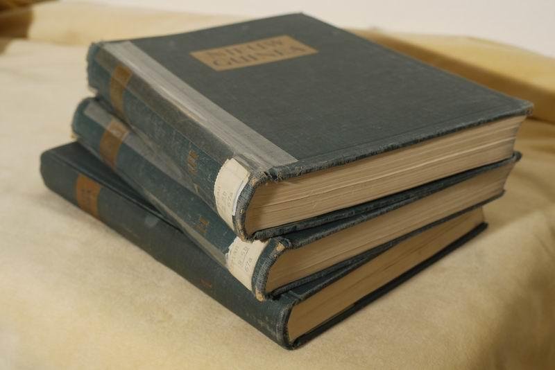 | Bijzonderheden: | 1954 , linnen, 1561pp, met talrijke ills., conditie: goed/zeer goed, met kaarten, ruggen dl.2 en 3 beschadigd maar wel stevig in de banden, enkele bibliotheekstempels en etiketten, incl. 2 los bijgevoegde kaarten |