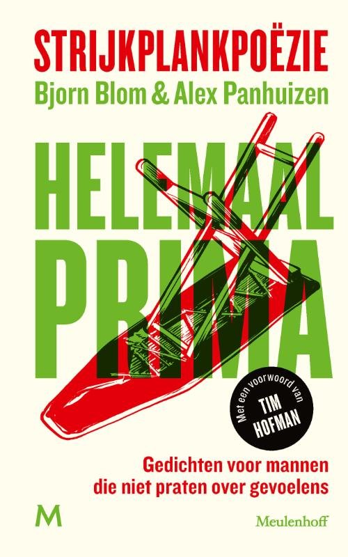 De gedichten van het duo Strijkplankpoëzie zijn soms luchtig, soms serieus en beetje bij beetje maken ze iets los. Of je nu een man bent of er een kent. Met een voorwoord van Tim Hofman. Bjorn en Alex vormen samen het dichtersduo Strijkplankpoëzie, met als missie om mannen te laten praten over hun gevoelens. Want dat doen ze veel te weinig, en dat kan leiden tot een scala aan problemen, zoals eenzaamheid, gevoelloosheid, verslechterde vader-zoon- en vader-dochterrelaties, radicalisering, verslaving, gebroken families, angsten en onverwerkt verlies. Met hun boeiende theatervoorstelling Het gaat goed hoor vermengen Bjorn en Alex poëzie en cabaret tot iets unieks: mannen die over gevoelens praten. En hierbij gaan ze verder dan de vraag: ‘Hoe gaat het met je?’ De bundel Helemaal prima staat vol gedichten over leven en dood, (mislukte) relaties, de maatschappij en bovenal het onderwerp waarover mannen niet gauw praten: emoties. Je wordt bij de hand genomen door grappen, pijnlijke momenten e