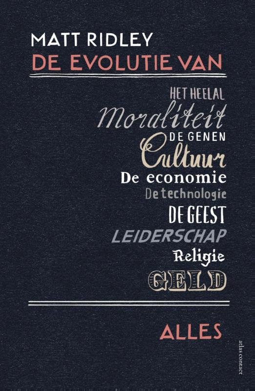 Als er één hardnekkige mythe over de wereld bestaat dan is het dat we allemaal aannemen dat wij mensen kunnen plannen hoe de wereld zich ontwikkelt. Matt Ridley betoogt dat ‘evolutie’ het sleutelbegrip is om te kunnen begrijpen hoe en waarom onze wereld verandert. Dat geldt niet alleen voor de natuur, maar ook voor vrijwel alles in de menselijke cultuur van politiek, moraliteit en technologie tot geld, filosofie en religie, het zijn allemaal evolutionaire fenomenen. Ze ontvouwen zich, geleidelijk, ongericht, aanzwellend, gestuurd door een natuurlijke selectie in een strijd met concurrerende ideeën. Natuurlijk hebben individuen invloed, net als politieke partijen en grote bedrijven. Maar in De evolutie van alles maakt Ridley duidelijk dat onze wereld weliswaar het product is van menselijk handelen, maar niet van menselijk ontwerp.
