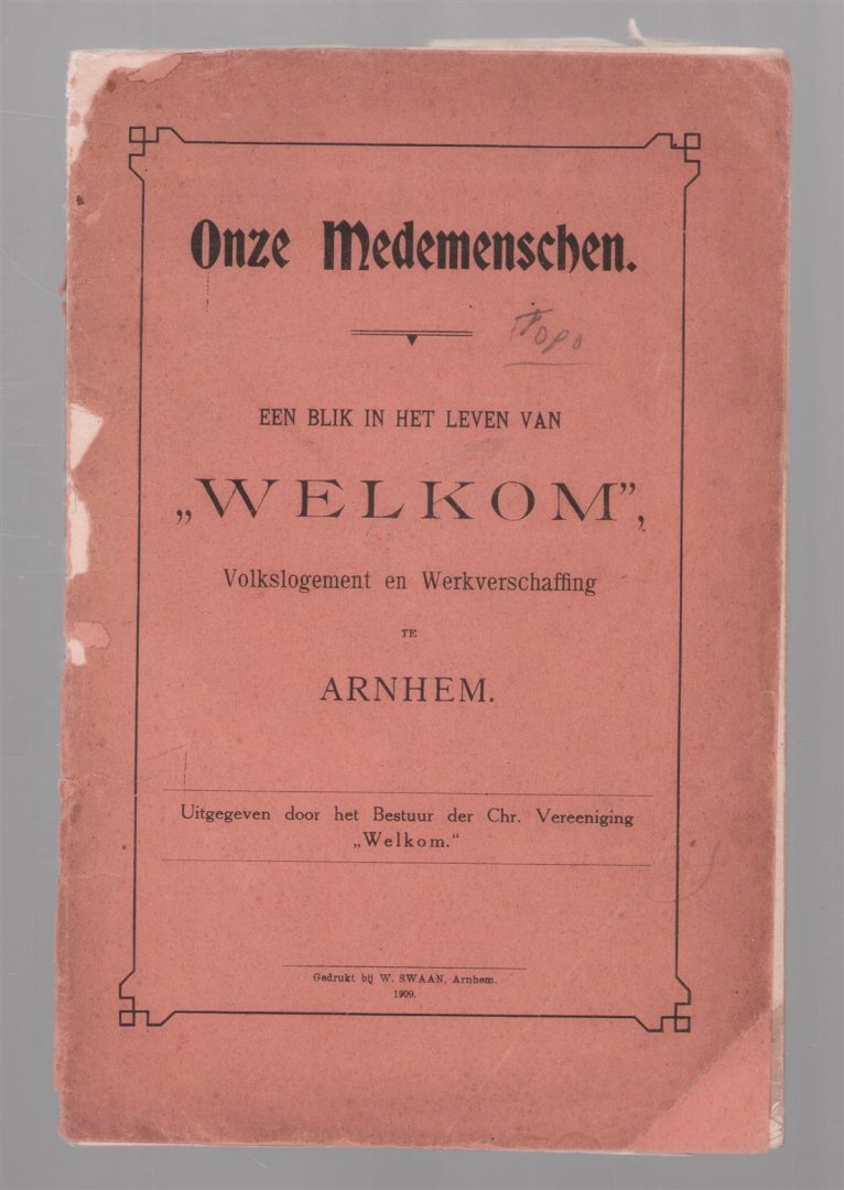 | Titel: | Onze medemenschen : een blik in het leven van Welkom, volkslogement en werkverschaffing te Arnhem |
