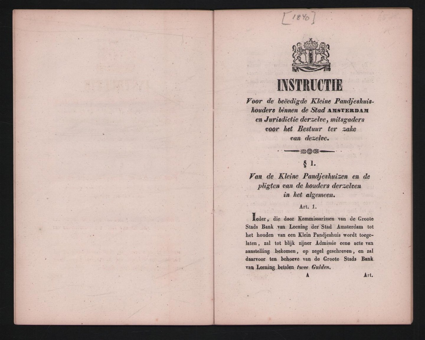| Titel: | Instructie voor de beeedigde kleine pandjeshuishouders binnen de stad Amsterdam en Jurisdictie derzelve, mitsgaders voor het bestuur ter zake van derzelve. ( = Instruction for pawnshop owners within the city of Amsterdam etc ) |