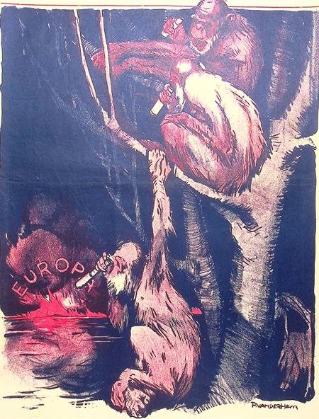 | Titel: | Oorlog in Europa vanuit perspectief van apen op spotprent |