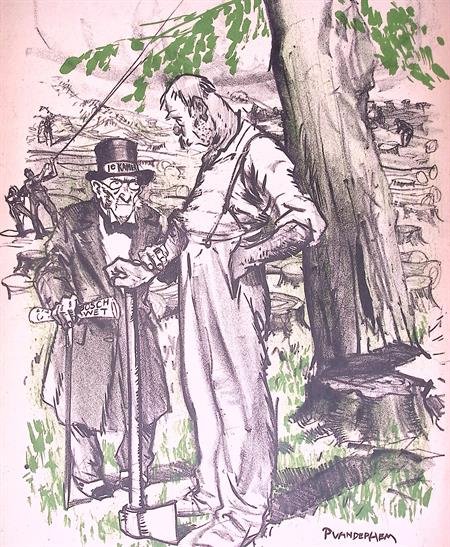 Piet van der Hem - Spotprent over bomenkapping in Nederland tij