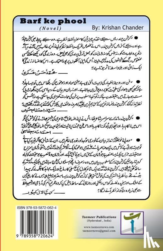 Flaptekst The background of Krishan Chander's novel Barf Ke Phool is the romantic atmosphere of Kashmir in which he has created the theme of exploitation of feudal system and failure in love. |
