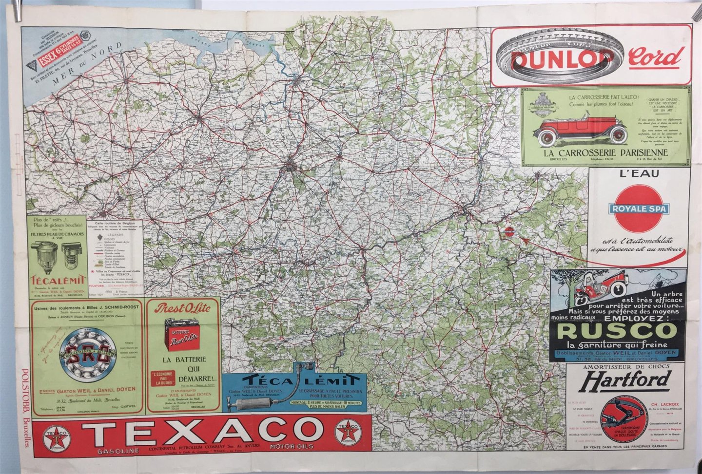 | Bijzonderheden: | 1924, Zeer goed, Oude wegenkaart - Datering schatting. Gevouwen bewaard gebleven. Minimale inscheuringen op de vouwen. PRACHTIGE reclames. Zeer mooi om in te listen (let op zowel voor als achterzijde zijn decoratief) 109cm x 75cm |