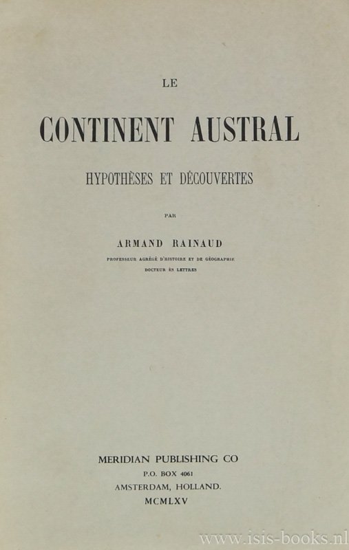 RAINAUD, A. - Le continent Austral. Hypothèses et découvertes.