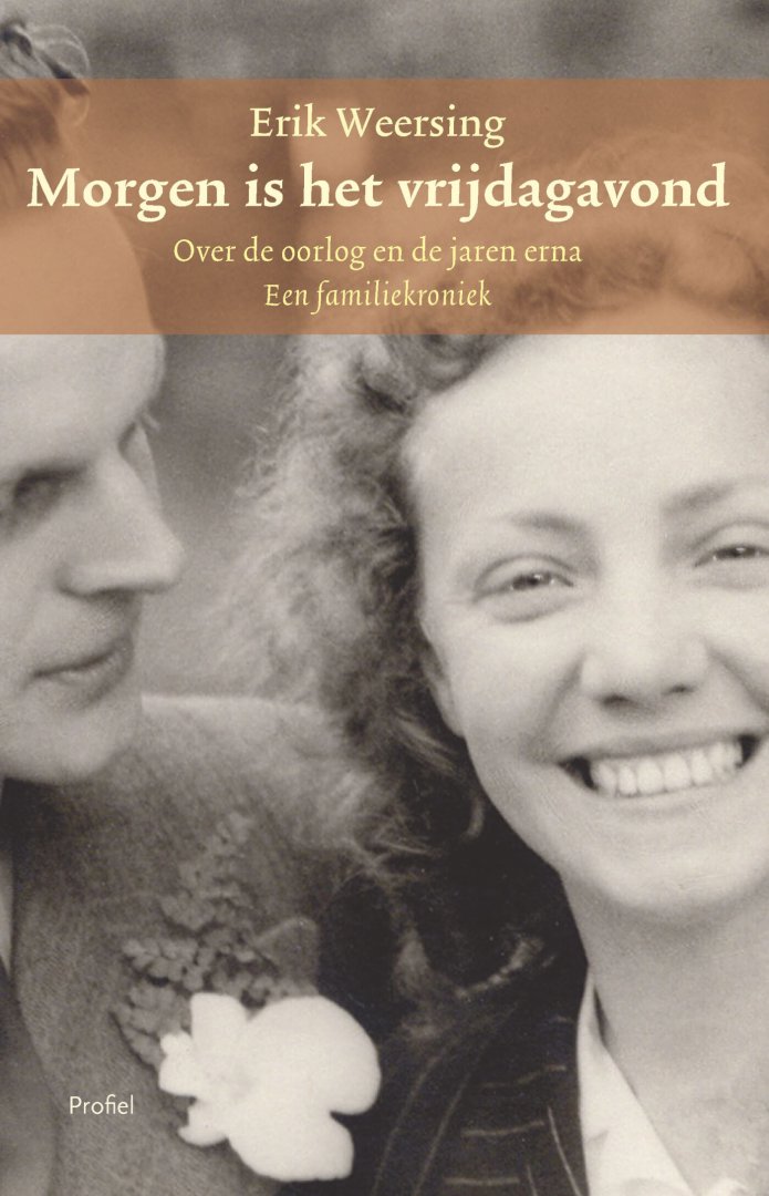 De familiekroniek Morgen is het vrijdagavond bestaat uit twee delen. Het eerste deel gaat over de ouders van de schrijver, en begint in Groningen, waar Leo Weersing, de vader, in de Tweede Wereldoorlog lid is van een knokploeg; helaas is hierover weinig bekend. Wel lezen we over de grote risico’s die hij met een paar kameraden neemt om de bezetter en NSB’ers een hak te zetten. Vrouwen spelen een belangrijke rol in deze periode van zijn leven – een vrouw zal hem ook ver raden. In de laatste winter van de oorlog ontmoet hij op zijn onderduikadres Sandra, die de moeder van de schrijver zal worden. Waarom viel de avontuurlijke waaghals voor deze onopvallende verpleegster? Bijzonder is de hechte vriendschap van Leo met de dichter Hendrik de Vries. In het tweede deel maakt de schrijver ons op openhartige wijze deelgenoot van zijn eigen ontwikkeling. We volgen de opgroeiende jongen, wiens leven gaandeweg steeds meer gedomineerd en gedicteerd wordt door een vader met sterk narcistische trekken. Het is fascinerend te lezen – soms met gekromde tenen – hoe het hem uiteindelijk toch lukt om onder deze overheersende man uit te komen. We hebben een boek in handen van een fijnzinnig schrijver. Hij voert ons onderhoudend, via de geschiedenis sen van zijn ouders, langs de verschillende woonplaatsen waar het gezin is neergestreken. De vele geraadpleegde bronnen, zijn fabelachtig geheugen en zijn meesterlijke verteltrant staan garant voor een rijk verhaal. Morgen is het vrijdagavond is een document vol van grote en kleine drama’s, gelardeerd met vele anekdotes, waarin de humor niet ontbreekt. Erik Weersing (1951) volgde de studie geneeskunde, werkte in de thuiszorg en studeerde later cum laude af in kunstgeschiedenis. Hij was werkzaam als notulist en was tekstschrijver bij het personeelsblad van Thuiszorg Groningen. Nog iedere twee maanden levert hij tal van artikelen voor de Wijkkrant Oosterpark in Groningen.
