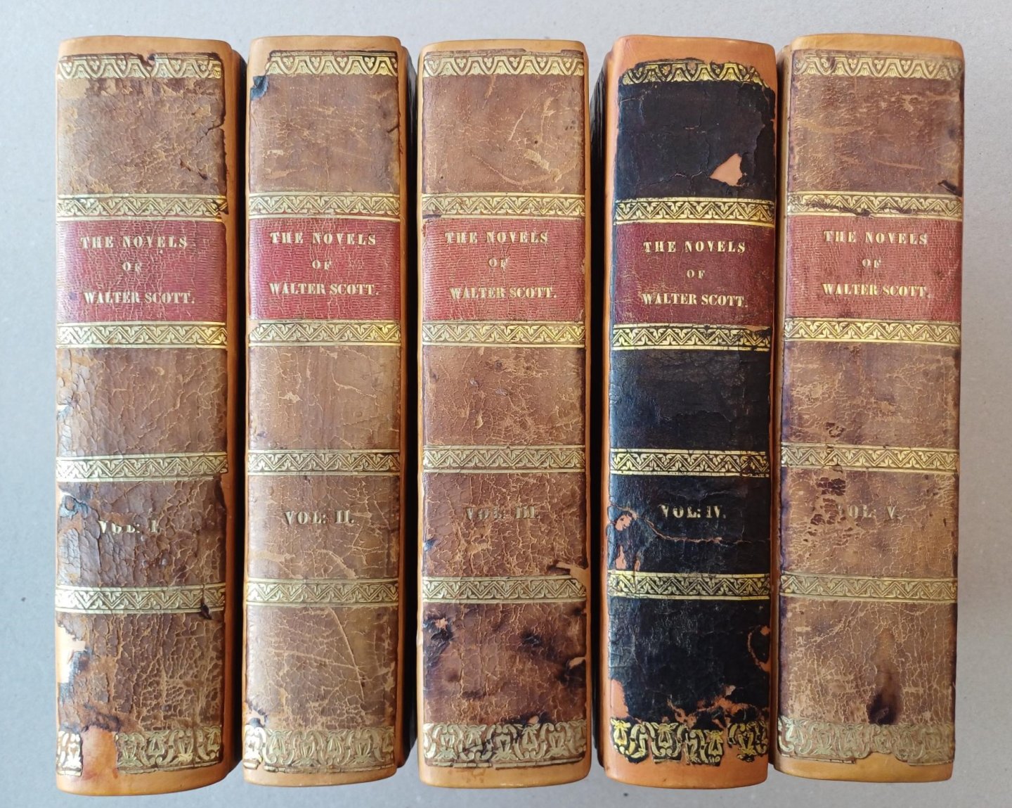 Vol I: Waverley, Guy Mannering, Antiquary, Rob Roy, Ivanhoe. Vol II: Tales of my Landlord, The Monastery. Vol III: The Abbot, Kenilworth, The Pirate, The Fortunes of Nigel, Quentin Durward. Vol IV: Peveril of the Peak, St Ronan's Well, Red Gauntlet, Tales of the Crusaders. Vol V: Woodstock, Chronicles of the Canongate, Anne of Geierstein, Robert of Paris, Castle Dangerous.
