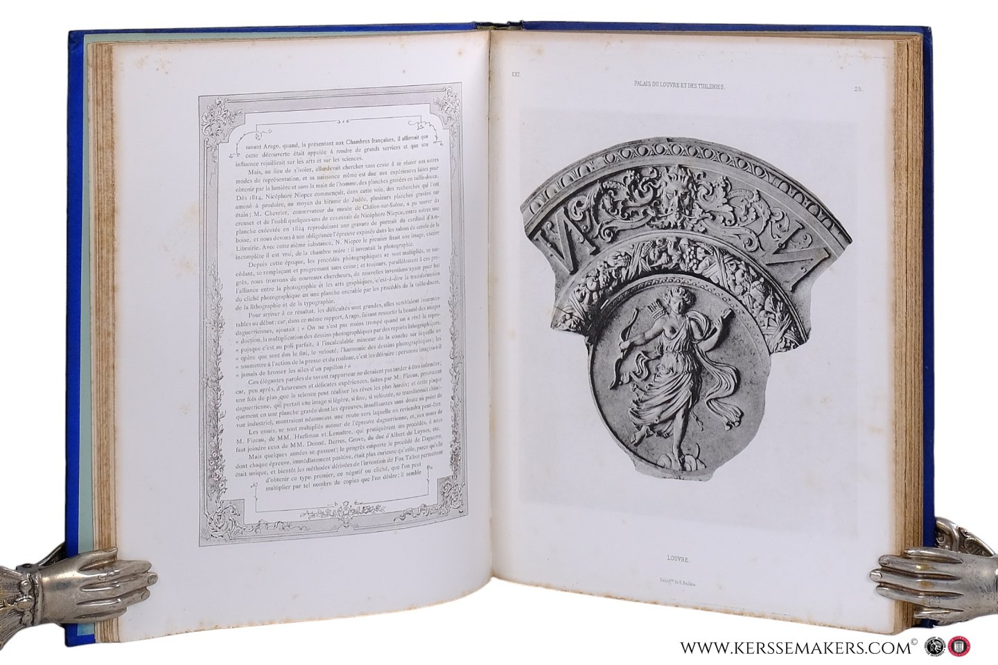 on backcover centerpiece with gilt centerpiece "Mouveau et Levesque, Relieurs, Doreurs, Paris". (Minimal rubbings to corners and spine). 1) 1) 1) 1) Catalogue de l'Exposition.... Halftitle, title and xl pp. text with nice ornemental borders. With frontispiece (photoglyptie by Goupil, pasted in) and 81 pages with advertisements, mostly in colour, of the great contemporary editors, 20 plates (14 colourplates), 12 engraved plates (4 etchings, 2 on wood, etc.), 8 pp. annotated music. At the end: 8 pp. 'Liste des exposants", "des éditeurs", "des imprimeurs". - 2) Histoire de la Gravure.... Halftitle, title and 32 pp. With portrait. - 3) La Photographie.... 20 pp.incl. engraved title. With frontispiece, 2 plates (heliogravures) and 1 photoglyptie by Goupil, pasted in. - Nice survey of the different techniques like chromolithography, photogravures, zincography, etchings (1 etching after Rembrandt: paper seriously browned), phototype, etc. Complete. - Paper with brown spots in the first half; to the end marginal waterstain, but still attractive.