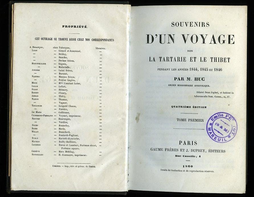 HUC, R.E. - Souvenirs d'un voyage dans La Tartarie et Le Thibet