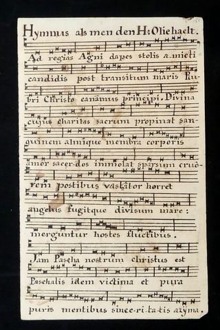 | Titel: | [Liedblatt, handschrifltich] Hymnus als men den H: Olie haelt |