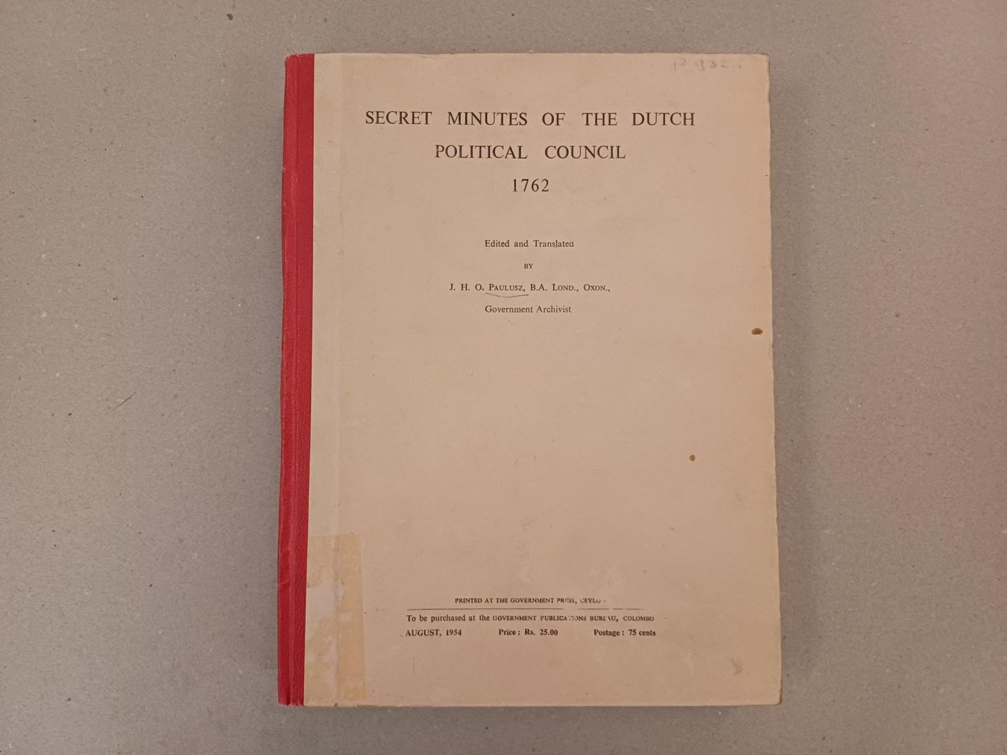 Paulusz, J.H.O. (Ed. & Transl.) - Secret Minutes of the Dutch P