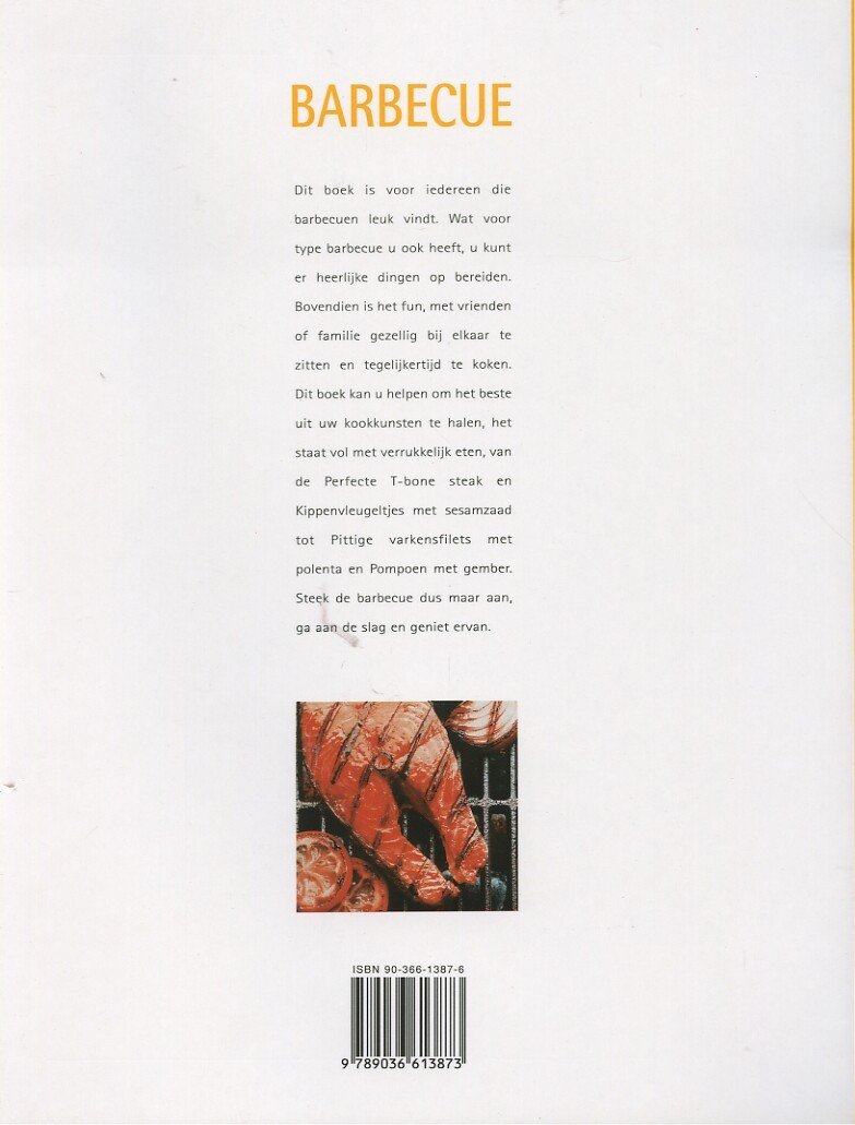 Dit boek is voor iedereen die barbecuen leuk vindt.Wat voor type barbecue u ook heeft, u kunt er heerlijke dingen op bereiden.Bovendien is het fun, met vrienden of familie gezellig bij elkaar te zitten en tegelijkertijd te koken.Dit boek kan u helpen om het beste uit uw kookkunst te halen, het staat vol met verrukkelijk eten, van deperfecte T-bone steak en kippenvleugeltjes met sesamzaad tot pittige varkenfilets met polenta en pompoen met gember.Steek de barbecue dus maar aan, ga aan de slag en geniet ervan