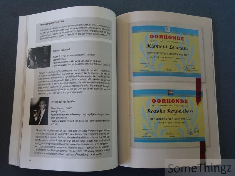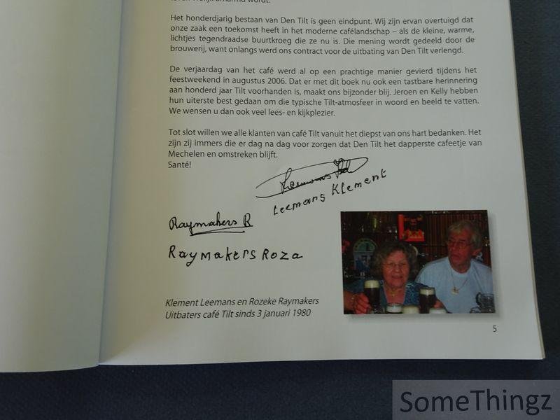 | Meer info: | 100 jaar café Tilt, 1906 - 2006 neemt je mee op een nostalgische reis door een eeuw cafégeschiedenis. Van de oprichting in 1906 vertelt dit boek de verhalen van stamgasten, wielerclubs en de onvergetelijke Rozeke. Een ode aan vriendschap, gemeenschap en de ziel van Mechelen. |