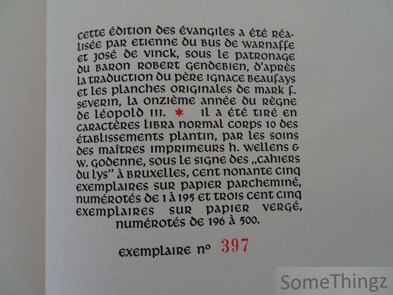 Cette édition artistique des quatre évangiles canoniques présente une fusion remarquable entre texte sacré et expression artistique. Réalisée en 1944, elle reflète une volonté de magnifier le message évangélique à travers une présentation soignée et symbolique. Les illustrations et le typographie en rouge et noir renforcent les thèmes de l'amour et du deuil. La traduction du père Ignace Beaufays offre une lecture fidèle et accessible, tandis que les illustrations de Mark F. Severin ajoutent une dimension contemplative à l'?uvre. Cette édition limitée à 500 exemplaires constitue un témoignage précieux de l'engagement spirituel et artistique de ses créateurs.