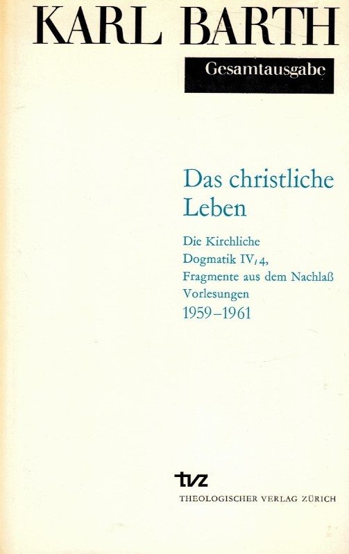 Karl Barth, Gesamtausgabe, Teil 7, Das christliche Leben, herausgegeben von Hans-Anton Drewes und Eberhard Jüngel. Die Kirchliche Dogmatik IV, 4, Fragmente aus dem Nachlaẞ Vorlesungen 1959-1961. Mit vorwort von Hans-Anton Drewes und Eberhard Jüngel. |