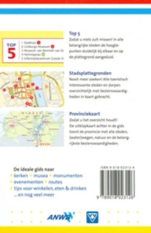Reisgids Limburg begint met een korte beschrijving van de provincie, een lijstje met 10 topattracties en een overzicht met de belangrijkste evenementen. Daarna volgen per streek beschrijvingen van de leuke, mooie en bijzondere plaatsen die er te vinden zijn (in alfabetische volgorde). Bij elke plaats staan bezienswaardigheden, evenementen, winkeltips en bijzondere horeca aangegeven. Bij grotere plaatsen staan deze toeristische tips overzichtelijk op een plattegrond afgedrukt. Alle belangrijkste steden hebben naast een stadsplattegrond ook een (stads)top 5. Daarmee vindt de lezer snel de highlights en hoeft hij niets te missen. Waar mogelijk is de informatie aangevuld met prijsgegevens en informatie over openingstijden. Een pictogram geeft aan of de bezienswaardigheid vooral ook leuk is voor kinderen. De uitklapkaart achterin de gids geeft tot slot een duidelijk overzicht van de provincie.De serie ANWB Reisgids NL bestaat uit: Groningen & Drenthe, Friesland, Overijssel, Gelderland, Utrecht, Noord-Holland & Flevoland, Zuid-Holland, Zeeland, Noord-Brabant en Limburg.