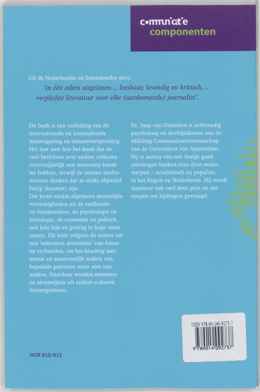 Dit boek is een ontleding van de internationale en interculturele nieuwsgaring en nieuwsverspreiding. Het laat zien hoe het komt dat zoveel berichten over andere volkeren onvermijdelijk een stereotiep karakter hebben, terwijl de meeste mediamensen denken dat ze strikt objectief bezig (kunnen) zijn. Dat komt omdat algemeen menselijke wetmatigheden uit de taalkunde en betekenisleer, de psychologie en sociologie, de economie en politiek, ook hun kijk en gedrag in hoge mate sturen. Dit leidt volgens de auteur tot een 'selectieve articulatie' van feiten en verbanden, tot het krachtig aanzetten en aannemelijk maken van bepaalde patronen maar niet van andere. Daardoor worden stemmen en zienswijzen uit andere culturen buitengesloten.InhoudsopgaveWoord vooraf 1. Inleiding 2. Wat is nieuws of 'niets nieuws'? 3. Welke zijn de smaakmakende media in de wereld? 4. Wie zijn journalisten en hoe werken ze? 5. Wie komt aan het woord in het wereldnieuws? 6. Wanneer wordt iets wereldnieuws? 7. Waar komt het wereldnieuws vandaan? 8. Hoe wordt ons de wereld beschreven? 9. Hoe wordt ons de wereld getoond? 10. Welke effecten hebben mediaberichten over 'anderen'? 11. Conclusie