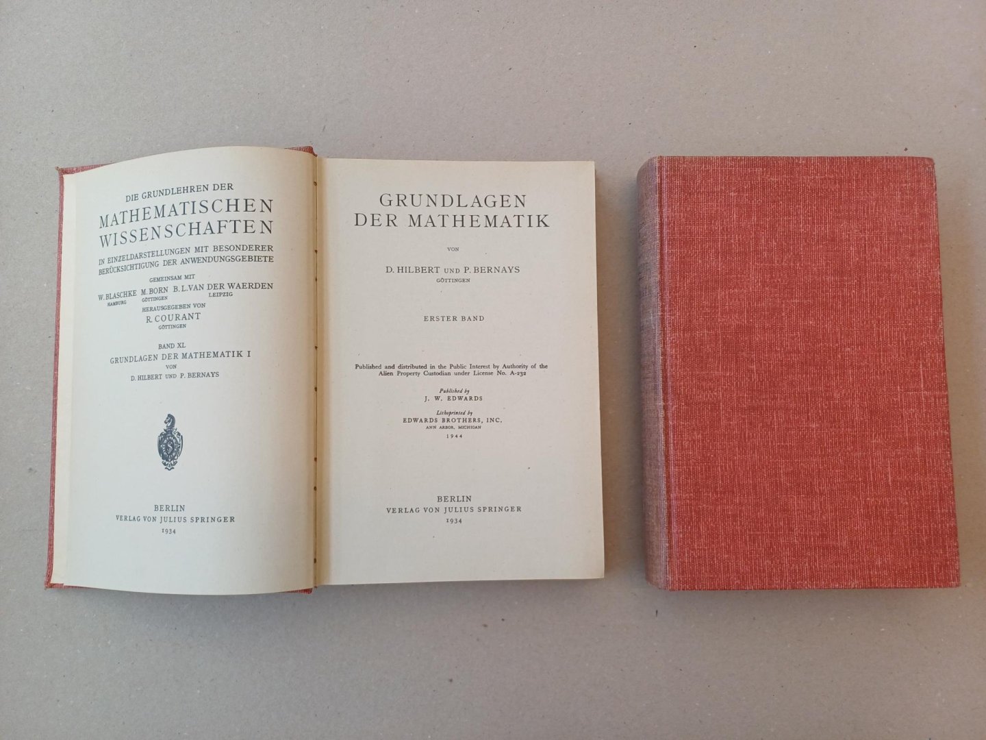HILBERT, D(avid), P(aul) BERNAYS, - Grundlagen der Mathematik.