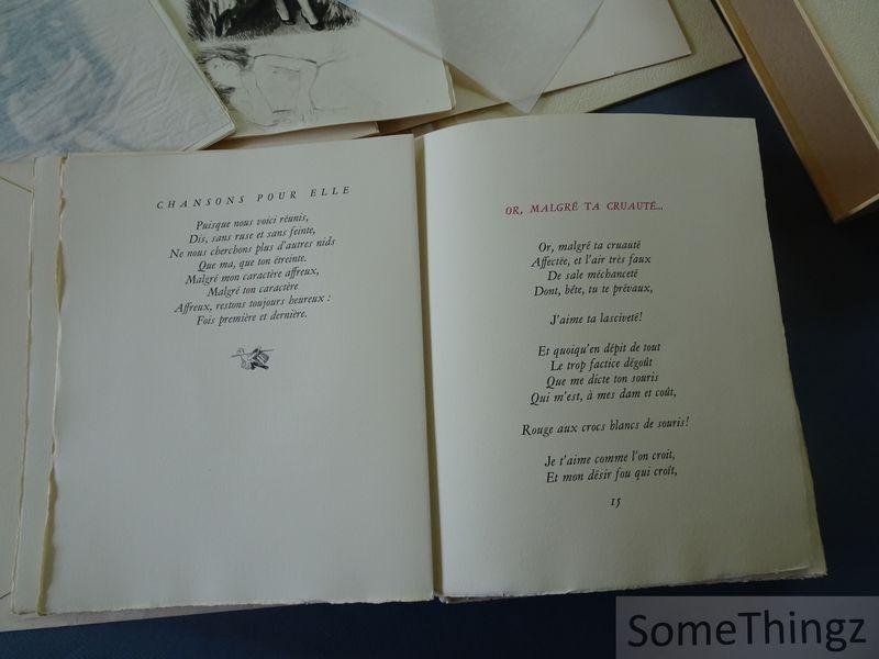 | Titel: | Chansons pour Elle et Ode en son honneur. [Un de 85 exemplaires sur Rives contenant une suit en noir avec remarques.] |