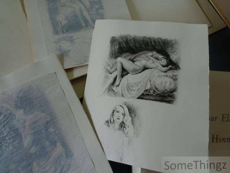 Ce volume réunit deux recueils poétiques majeurs de Paul Verlaine': les Chansons pour Elle (1891), composées de vingt-cinq poèmes à tonalité érotique inspirés d'un amour passionné, et les Odes en son honneur (1893), prolongement lyrique et sensuel du premier ensemble . Édition de bibliophilie, agrémentée de 18 pointes-sèches originales de Paul-Emile Bécat, l'ouvrage propose une association intime et raffinée entre texte et image. Chaque gravure, sobrement exécutée, renforce l'atmosphère de volupté délicate, faisant écho à la tonalité décadente et symboliste de Verlaine. Le tirage limité et la qualité du papier vélin de Rives soulignent l'objet comme un chef-d'oeuvre de la bibliophilie du XXe siècle. Paul Verlaine (1844-1896). Poète central du symbolisme et du décadentisme français, Verlaine a marqué la fin du XIXe siècle par sa langue musicale et parfois vulgaire, son exploration de la passion, de la mélancolie et de l'amour contrarié. Issu de Metz, il publie Chansons pour Elle en 1891, inspiré de ses relations amoureuses. Son écriture, émotive et sensuelle, trouve un écho chez les symbolistes. Il meurt à Paris en 1896