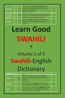 Learn Good Swahili is presented in 3 volumes: Volume 1: A Complete Grammar. 349 pages. Volume 2: 5,000+ words Swahili-English Dictionary. 370 pages. Includes a built-in mini-thesaurus. *,**see examples below. Volume 3: 5,000+ words English-Swahili Dictionary. 427 pages. Includes a built-in mini-thesaurus. *,**see examples below. Volume 1 contains step-by-step explanations of all features of Swahili grammar, with lots of examples and exercises, plus indexes. For anyone new to Swahili or wants to improve or brush up - whether you are a tourist, an expatriate, a volunteer, etc in East Africa - these are the books you need to enhance your experience there, for being able to communicate with locals in their language is always most satisfying. All proceeds of this book will go to needy school children in Tanga, Tanzania where the author was born, grew up and finished high school. *An example of a dictionary entry: lingana   v   match e.g. kusoma kwa mtoto kunalingana umri wake, the child's reading matches her age where \"v\" indicates verb. Note: All Swahili text in all volumes is italicized as seen above, to visually distinguish it from all the other English text. **The built-in mini-thesaurus takes two forms: (1) Related Words e.g. the entry for \"abadan\" has Related Words, as follows: [\"F\" = foreign-origin; \"adv\" = adverb] abadan   F   adv   always e.g. yeye abadan haridhi, he is never contented Related Words: baadaye, later/then daima, always halafu, then huenda, sometimes kabla ya, before kamwe, never kila mara, every time, always kisha, afterwards milele, forever punde, shortly sasa, now zamani, earlier (2) Words grouped under the following categories: body, building structure, fauna, food, person, produce, terrain, tool, utensil, vegetation (including flora) and for adjectives, colours e.g. some of the entries under body are, in alphabetical order in English: [entries in brackets such as \"(m,mi)\" = (singular, plural prefixes); \"n\" = noun; \"V\", \"xFF\", \"xFV\", \"U\", \"T\" are noun groups as explained in Volume 1, Chapter 3: Nouns] mkono(m,mi) n body: arm V kwapa(-,ma) n body: armpit xFF mgongo(m,mi) n body: back V ndevu(-) n body: beard xFV mshipa(m,mi) n body: blood vessel V ... mkia(m,mi) n body: tail V paja(-,ma) n body: thigh xFF koo(-,ma) n body: throat xFF ulimi(ul,nd) n body: tongue U mkonga(m,mi) n body: trunk (elephant) V kiuno(ki,vi) n body: waist T (A total of over 70 entries under body)