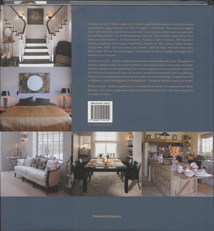 Wonen met stijl - Tijdloos wegdromen 2 inspireert je om thuis echt te gaan voor die persoonlijke touch en om van je woning een uniek pareltje te maken. Het boek bevat twintig reportages en dus even veel woonstijlen, want elk project is immers compleet anders. En dat maakt het nu net zo interessant om in dit boek te duiken. Je treedt binnen in de boeiende wereld van smaken en trends. Interessante trend, die uiteraard aan bod komt: mensen leven zowel binnen als buiten, en dus ontdek je overal een symbiose van huis en tuin.Zowel woningen als lofts en appartementen passeren de revue. Auteur Patrick Retour gaat aan geen enkel aspect van bouwen en verbouwen, inrichten en herinrichten voorbij: palet bepalen, materialen kiezen, detailafwerking, energiezuinig werken, hightech snufjes? Als geen ander kan Patrick Retour in woorden vatten welke accenten een interieur karakter geven met ruimte voor persoonlijke interpretatie en invulling.Een boek in samenwerking met o.a. Pieter Porters, Ilse De Meulemeester, Stijn Cornilly, Scapa Home, Peter Deckers, Tradiplan, Suzy Paesmans, Jos Vanderperren, Nicky Goossens, Flamant & Sels. Leuk: we zijn te gast thuis bij regisseur Jan Verheyen.Fotografen Mich Verbelen en Eddy Vangroenderbeek laten de leefwereld van de bewoners achter de gevels zien. Geen enkel detail ontsnapt aan hun lens.