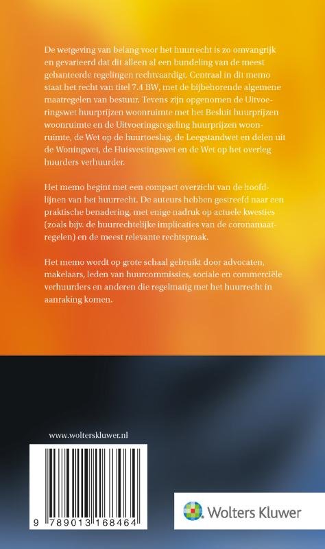De wetgeving van het huurrecht is bijzonder dynamisch en gevarieerd. Dit memo staat bekend als standaardwerk en helpt je de voortdurende veranderingen in de praktijk van het huurrecht bij te blijven. Dankzij het handige trefwoordenregister vind je snel wat je zoekt. De bij het huurrecht relevante wetgeving is zo omvangrijk en gevarieerd dat je in de praktijk simpelweg niet zonder gedegen overzicht van de actueel gehanteerde regelingen kan. Huurrechtmemo 2022-2023 brengt de belangrijkste regels uit het huurrecht op compacte wijze samen. Centraal uitgangspunt hierbij is titel 7.4 BW, met de bijbehorende algemene maatregelen van bestuur. Om de uitgave compleet te maken zijn er daarnaast (delen) van andere relevante wetten opgenomen, waaronder: Uitvoeringswet huurprijzen woonruimte, met het Besluit huurprijzen woonruimte en de Uitvoeringsregeling huurprijzen woonruimte Wet op de huurtoeslag Leegstandwet Woningwet Huisvestingswet Wet op het overleg huurders verhuurder Het memo staat sinds jaar en dag bekend als standaardwerk. Het wordt op grote schaal gebruikt door advocaten, makelaars, leden van huurcommissies, sociale en commerciële verhuurders en anderen die regelmatig met het huurrecht in aanraking komen. De auteurs leveren op de eerste plaats een handzaam overzicht van de hoofdlijnen van het huurrecht. Ze hanteren een praktische benadering, waarbij de nadruk ligt op actuele kwesties en de meest relevante rechtspraak. Zo krijg je snel inzicht in de belangrijkste regels uit het huurrecht, evenals de directe toepassing ervan met geactualiseerde achtergronden. De 2022-2023 editie van Huurrechtmemo is uiteraard in vele opzichten geactualiseerd met de laatste wetgeving, rechtspraak en ontwikkelingen. Denk hierbij aan de huurrechtelijke implicaties van de coronamaatregelen. Dankzij een handig trefwoordenregister vind je snel de wetgeving en thema’s die je zoekt.