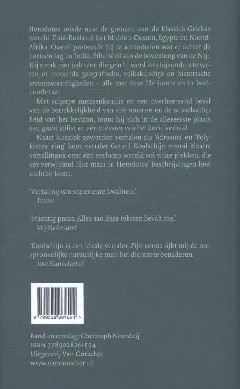 De Griek Herodotos uit Halikarnassos (het huidige Bodrum aan de westkust van Turkije) was de eerste grote Europese prozaschrijver. Zijn leven viel samen met de bloei van het klassieke Athene in de vijfde eeuw voor Christus (ca. 480-ca. 425), en het enige boek dat hij schreef, Onderzoekingen, is kenmerkend voor zijn tijd en tegelijk van uitzonderlijke klasse.Herodotos reisde naar de grenzen van zijn wereld: Zuid-Rusland, het Midden-Oosten, Egypte en Noord-Afrika. Overal probeerde hij te achterhalen wat er achter de horizon lag, in India, Siberië of aan de bovenloop van de Nijl. Hij sprak met iedereen die geacht werd iets bijzonders te weten en noteerde geografi sche, etnologische en historische gegevens, alle met dezelfde ironie enin beeldende taal.Schrijvend met scherpe mensenkennis en een overheersend besef van de betrekkelijkheid van alle normen en de wisselvalligheid van het bestaan, toont hij zich in de allereerste plaats een groot stilist en een meester van het korte verhaal.Naast klassiek geworden verhalen als 'Adrastos', 'Periander' en 'Polykrates' ring' koos Gerard Koolschijn vooral bizarre verhalen over een verloren wereld vol witte plekken, die ver verwijderd lijkt, maar in Herodotos' beschrijving heel dichtbij komt.Gerard Koolschijn vertaalde (onder veel meer) Griekse tragedies en Plato. In 2012 verscheen zijn roman Geen sterveling weet. In het voorjaar van 2016 jaarbezorgde hij de dagboeken en brieven van Herman Hissink. Van zijn vertalingen van verhalen van Herodotos verschenen inmiddels drie drukken. Voor Macht heeft vele minnaars breidde hij het aantal verhalen belangrijk uit.