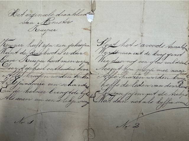 Het originele dranklied van Minister Kuyper.