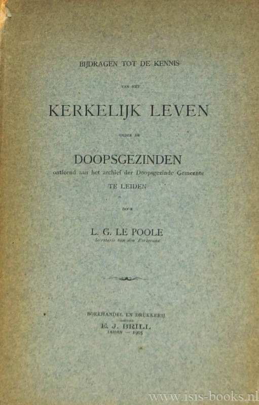 | Titel: | Bijdragen tot de kennis van het kerkelijk leven onder de doopsgezinden ontleend aan het archief der Doopsgezinde Gemeente te Leiden. |