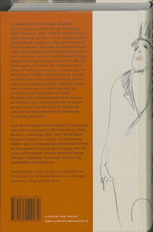 Diaghilev was de inspirator van kunstenaars als Picasso, Cocteau en Matisse, en de ontdekker van componisten als Stravinsky en Prokofiev. Zijn tumultueuze liefdesleven met dansers als Nizjinsky maakten hem de ster van de roddelpagina’s. Sjeng Scheijen maakte een ware odyssee langs archieven in Sint-Petersburg, Perm, Moskou, Cambridge, New York, Washington, Parijs en London. Anderhalf jaar lang bracht hij onafgebroken door tussen de manuscripten en handschriften en hij wist zo een onvoorstelbare rijkdom aan nooit eerder gepubliceerd materiaal boven water te krijgen. Scheijens biografie werpt een revolutionair nieuw licht op Diaghilevs leven. Diaghilevs onstilbare zucht naar schoonheid, zijn gepassioneerde vernieuwingsdrang, maar ook zijn angsten, zijn eenzaamheid en het diepe verdriet over het verlies van zijn familie en vrienden die achterbleven in Rusland, worden door nooit eerder gepubliceerd materiaal op een ongekende wijze tot leven gebracht. Sjeng Scheijen (1972) studeerde Slavische taal- en letterkunde aan de Universiteit Leiden. Vanaf 2001 liet hij Nederland kennismaken met het werk van Ilya Repin en andere Russische negentiende-eeuwse schilderkunst in een drietal ongehoord succesvolle tentoonstellingen in het Groninger Museum. Scheijen is Diagilev-kenner en wereldwijd veelgevraagd spreker op universiteiten, musea, symposia en festivals. |