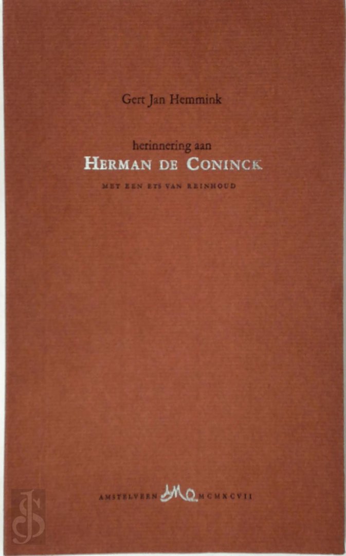 Dit ex. werd door de auteur opgedragen \"Voor Hugo [Claus], wat meer te zeggen over een vriend? Gert Jan\". Met de ets gesigneerd door Reinhoud.\n'Herinnering aan Herman de Coninck' werd op donderdag 22 mei geschreven en in de dagen erna op verzoek van Uitgeverij Amo te Amstelveen door Robert Cox uit de Garamond gezet en in een oplage van vijfendertig exemplaren op Hahnemühle gedrukt. Reinhoud maakte op verzoek een herinneringsets en drukte deze in La Bosse op eigen pers. Tekst gedrukt in drie kleuren, omslag in twee kleuren.