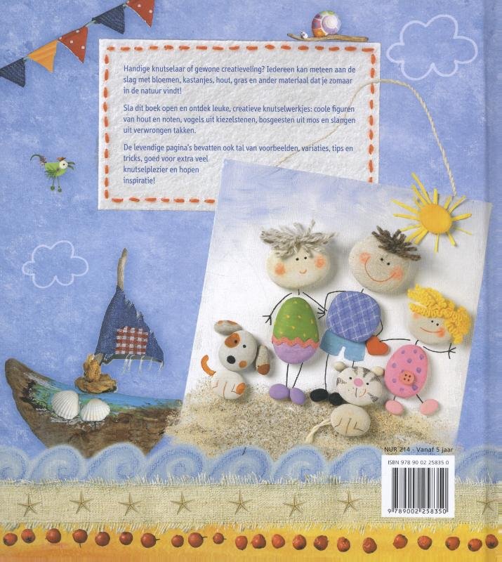 Handige knutselaar of gewone creatieveling? Iedereen kan meteen aan deslag met bloemen, kastanjes, hout, gras en ander materiaal dat je zomaarin de natuur vindt!Sla dit boek open en ontdek leuke, creatieve knutselwerkjes: coole figurenvan hout en noten, vogels uit kiezelstenen, bosgeesten uit mos en slangenuit verwrongen takken.De levendige pagina's bevatten ook tal van voorbeelden, variaties, tips entricks, goed voor extra veelknutselplezier en hopeninspiratie!