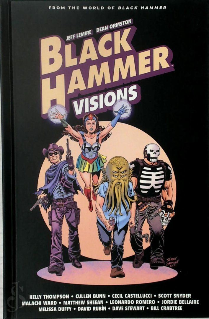 This collection launches the second part of a special two volume hardcover series of exciting stories taking place in the world of Jeff Lemire (Sweet Tooth, Moon Knight) and Dean Ormston's (Neil Gaiman's The Sandman, Books of Magick: Life During Wartime) Eisner Award-winning Black Hammer superhero comics. Creators such as Kelly Thompson, Cullen Bunn, Cecil Castellucci, Scott Snyder and many more of comics' top talents take on some of the greatest heroes and villains of Spiral City! This graphic novel collects Black Hammer: Visions #5-8 and also features a sketchbook section and pinups by Yuko Shimizu, Veronica Fish, Dan Brereton, Annie Wu, Brian Hurtt, and more! Featuring tales of the cult heroes and villains of Spiral City such as the Horseless Rider, Ms. Moonbeam, Cthu-Lou, and Skulldigger!