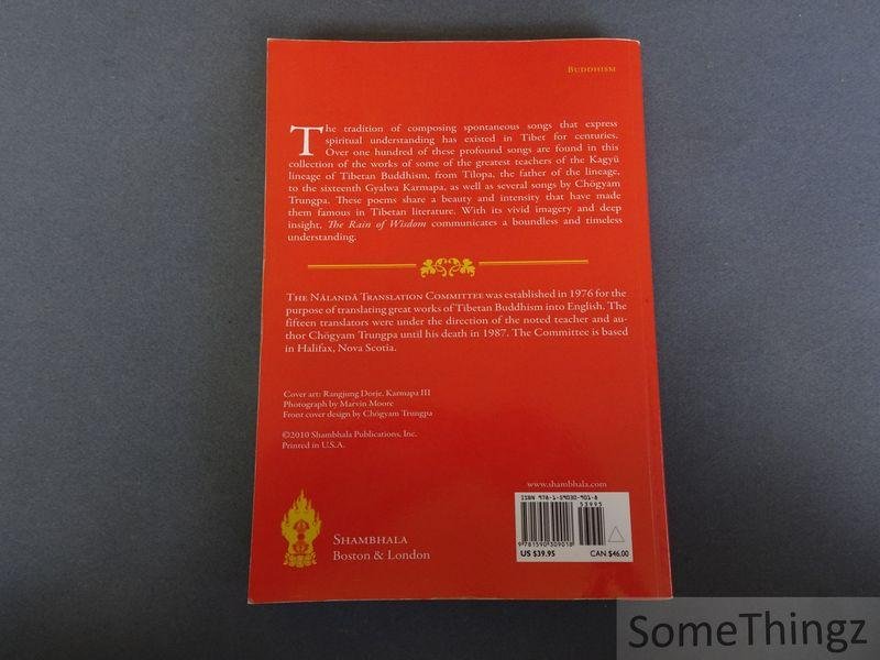 The tradition of composing spontaneous songs that express spiritual understanding has existed in Tibet for centuries. Over a hundred of these profound songs are found in this collection of the works of the great teachers of the Kagyü lineage, known as the Practice Lineage of Tibetan Buddhism. Many readers are already familiar with the colorful life of the yogin Milarepa, an early figure in the Kagyü lineage, some of whose songs are included here. Songs by over thirty other Buddhist teachers are also presented, from those of Tilopa, the father of the lineage, to those of the Sixteenth Gyalwa Karmapa, as well as several songs by Chögyam Trungpa, the noted teacher of Buddhism in America who directed the translation of The Rain of Wisdom. The diversity of the songs mirrors the richness of Tibetan Buddhism and gives us clear portraits of some of its most eminent teachers. Their longing for truth, their heartfelt devotion, and their sense of humor are all reflected. These poems share a beauty and intensity that have made them famous in Tibetan literature. With its vivid imagery and deep insight, The Rain of Wisdom communicates a profound and timeless understanding. / This volume presents over one hundred spontaneous spiritual songs (dohas) from the Tibetan Kagyü lineage, spanning from early masters like Tilopa and Milarepa to later figures including the Sixteenth Gyalwa Karmapa. Edited and translated under the direction of Chögyam Trungpa by the Nalanda Translation Committee, it offers not only literal translations but also deep spiritual context and commentary. The anthology highlights the devotional intensity, literary aesthetics, and pedagogical use of spontaneous verse in Vajrayana Buddhism, revealing how song poetry serves as a form of experiential teaching. Themen include non-conceptual realization, the interplay of humor and wisdom, and the embodiment of practice, making it a key resource for scholars of Tibetan religious literature, contemplative arts, and the transmission of oral-aural traditions.