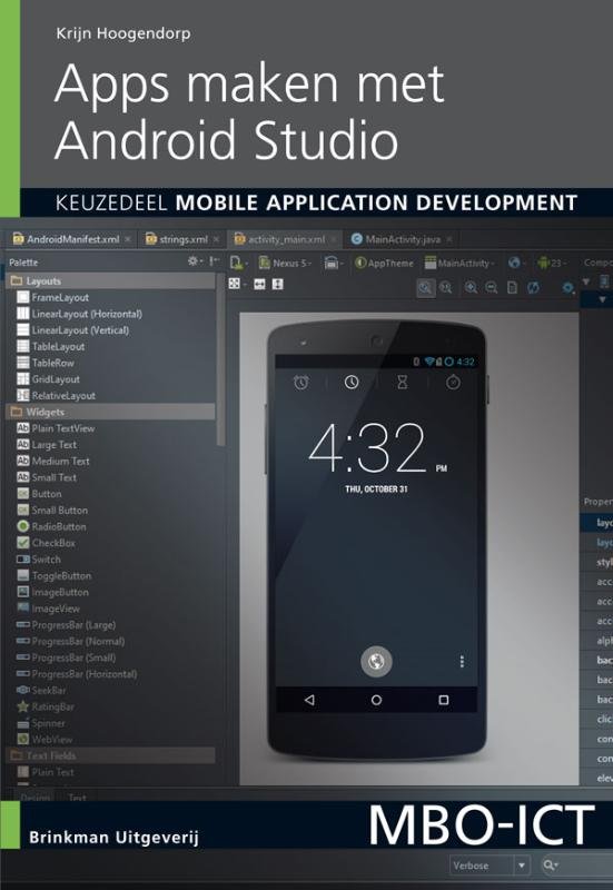 Door de snelle opkomst van smart phones en tablets is er een markt ontstaan voor applicaties die speciaal geschikt zijn voor mobiele apparaten. Deze apps moeten eenvoudig bediend kunnen worden en goed werken op schermen van alle afmetingen.Veel apps maken gebruik van sensoren en de andere hardwaremogelijkheden van de mobiele telefoon.Dit boek is gericht op programmeren voor Android, maar het geleerde is ook nuttig als je in de toekomst verder gaat met apps maken voor andere platforms.Apps maken met Android Studio' is opgezet als lesmateriaal voor de opleiding Applicatieontwikkeling in het MBO ICT. Dit boek dekt ook de eisen van het keuzedeel K0497 Mobile Application Development.Naast deze specifieke doelgroep is de uitgave breed inzetbaar, ook bijvoorbeeld voor de bovenbouw van het voortgezet onderwijs.