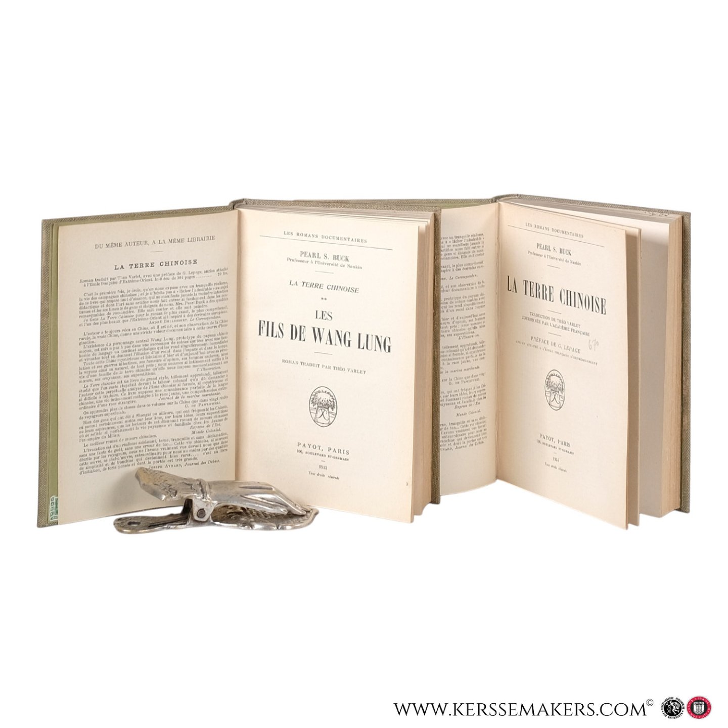 | Meer info: | French translations of "The Good Earth" and "Sons". Paper slightly browned, few underlinings in pencil, bindings clean and solid, still very good set. See picture. Note: Translation by Théo Varlet and preface by Léon de Lepage. |