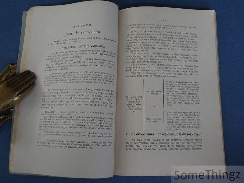 | Meer info: | Inhoud: I. Samenstelling der voeders; II. Rol der voedingsstoffen. Waarde der voeders; III. Over de rantsoenen; IV. De bijzonderste voedermiddelen en hun specifieke werking; V. De dierenvoeding in de praktijk. |