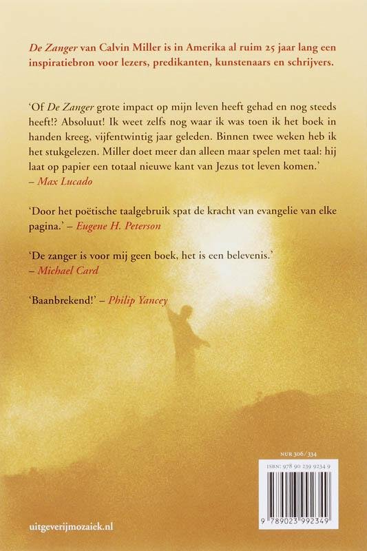 De Zanger van Calvin Miller is in Amerika al ruim 25 jaar lang een inspiratiebron voor lezers, predikanten, kunstenaars en schrijvers.