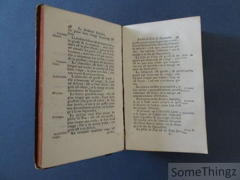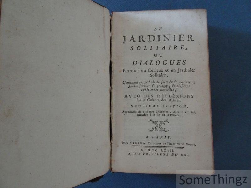 | Titel: | Le Jardinier solitaire, ou Dialogues entre un Curieux et un Jardinier solitaire, contenant la méthode de faire & de cultiver un Jardin fruitier & potager, & plusieurs expériences nouvelles, avec des réflexions sur la Culture des Arbres. |