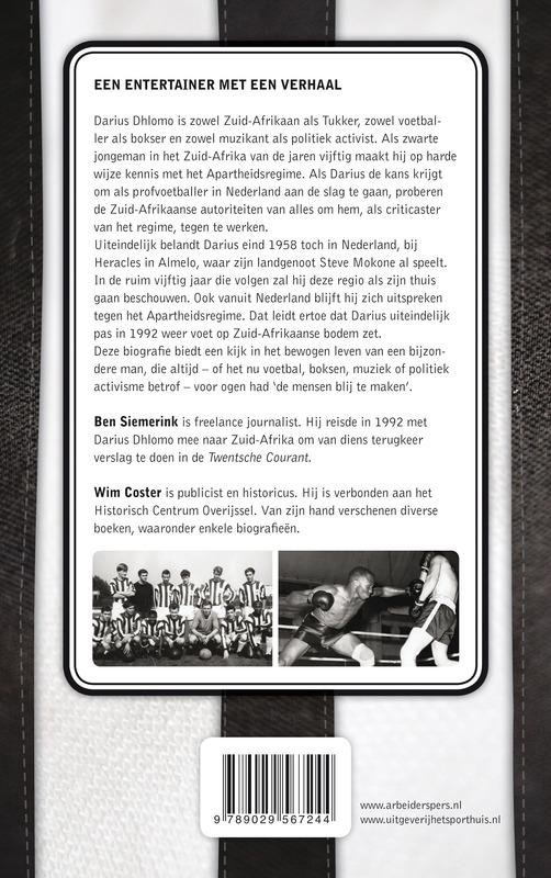 Een entertainer met een verhaalDarius Dhlomo is zowel Zuid-Afrikaan als Tukker, zowel voetballer als bokser en zowel muzikant als politiek activist. Als zwarte jongeman in het Zuid-Afrika van de jaren vijftig maakt hij op harde wijze kennis met het Apartheidsregime. Als Darius de kans krijgt om als profvoetballer in Nederland aan de slag te gaan, proberen de Zuid-Afrikaanse autoriteiten van alles om hem, als criticaster van het regime, tegen te werken.Uiteindelijk belandt Darius eind 1958 toch in Nederland, bij Heracles in Almelo, waar zijn landgenoot Steve Mokone al speelt. In de ruim vijftig jaar die volgen zal hij deze regio als zijn thuis gaan beschouwen. Ook vanuit Nederland blijft hij zich uitspreken tegen het Apartheidsregime. Dat leidt ertoe dat Darius uiteindelijk pas in 1992 weer voet op Zuid-Afrikaanse bodem zet.Deze biografie biedt een kijk in het bewogen leven van een bijzondere man, die altijd of het nu voetbal, boksen, muziek of politiek activisme betrof voor ogen had `de mensen blij te maken .