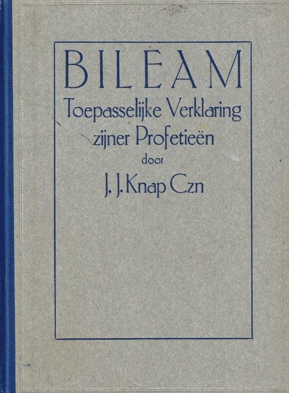 Bileam van ds. J.J. Knap Czn. is een toepasselijke verklaring zijner profetieen. In 24 hoofdstukken gaat ds. Knap op de profetieën van Bileam in. Ds. J.J. Knap (1867-1945) was Hervormd predikant te Groningen. |