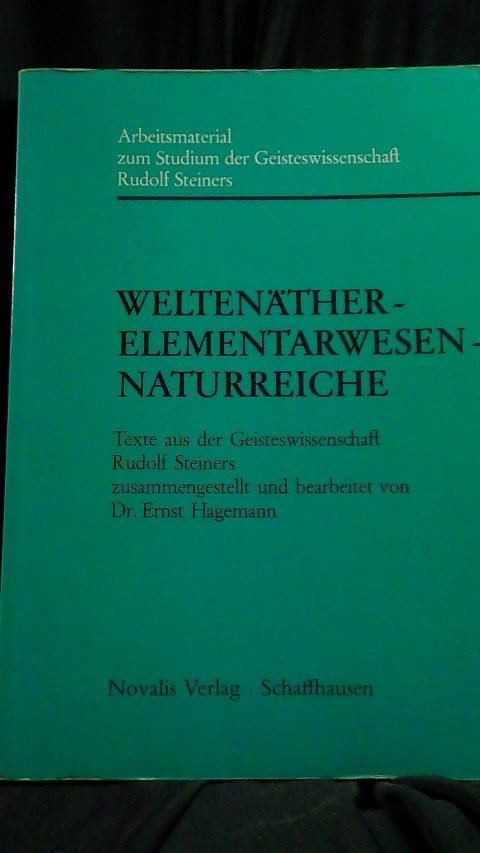 Welten?ther- Elementarwesen- Naturreiche. Textsammlung GA R.Steiner. Freiburg i. Br., Verlag die Kommenden. 1973. Kartonniert. Format A4. Sehr nett. l 304 S. Arbeitsmaterial zum Studium der Geisteswissenschaft Rudolf Steiners. Mit Stichwortverzeichnis. Einige wenige Bleistift- unterstreichungen im Text. Buitenkant van het boek iets vuil van het schuiven.