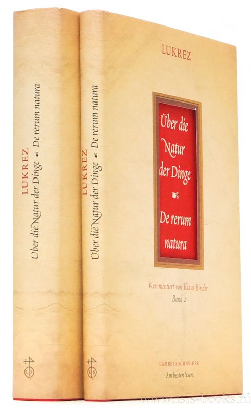 | Titel: | Über die Natur der Dinge. De rerum natura. Lateinisch-Deutsch. In deutsche Prosa übertragen und kommentiert von Klaus Binder. Complete in 2 volumes. |
